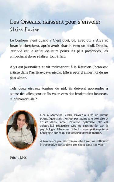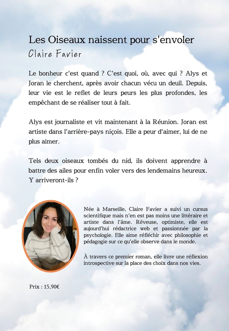Aujourd’hui, je continue à écrire. De la fiction, toujours. D’ailleurs, j’ai sorti mon premier roman fin 2024, Les Oiseaux naissent pour s’envoler ! Et je crée aussi des contenus web.