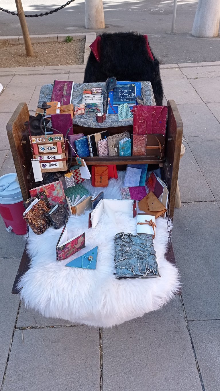 Tout au long de la journée, vous pourrez flâner, offrir ou vous offrir les réalisations des artisans autour du livre qui exposeront leurs créations et vous montreront leur savoir-faire : carnets d'écriture, de notes, à dessins, d'aquarelles faits mains, cartes postales, calligraphes, illustration par un dessinateur caricaturiste...